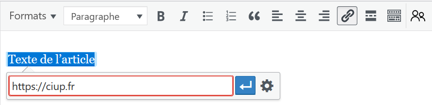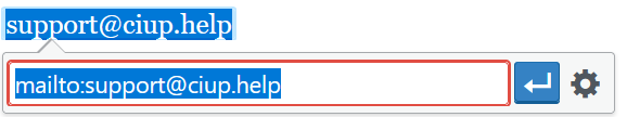 mailto:support@ciup.help - Il suffit normalement dans ce cas de sélectionner l'adrersse email et de cliquer sur l'icone permettant de créer un lien. Le préfixe sera ajouté automatiquement.