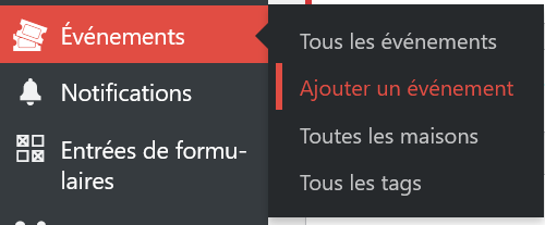 Rendez-vous dans l’onglet Évènements et ouvrez le votre. Une fois les modifications effectuées, mettez le à jour !